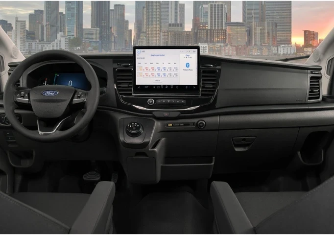 Experience the ultimate in comfort and convenience with the interior of the Ford E-Transit. Featuring cutting-edge Ford Sync 4 technology, stay connected and in control with seamless integration of your favorite apps and features. The 12" touchscreen display with Apple CarPlay and Android Auto ensures easy access to navigation, music, and communication on the go. With spacious and comfortable seating, you can tackle long drives with ease. Plus, the convenient storage compartments make it easy to keep your workspace organised. Upgrade your driving experience with the Ford E-Transit and enjoy every moment behind the wheel.