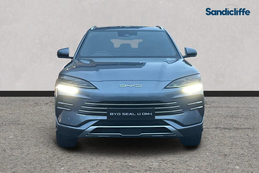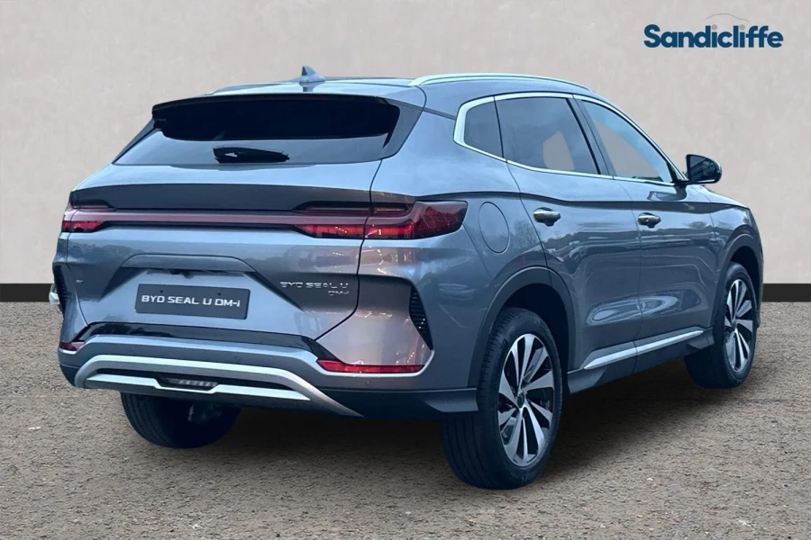 Discover the new BYD Seal U DM‑i Design AWD in striking Time Grey — the latest plug-in hybrid SUV that’s redefining what you expect from a family car. With intelligent DM-i dual-mode hybrid technology, it offers effortless electric driving for everyday journeys and seamlessly switches to petrol when you need extra range — this variant is available with up to 43 miles of electric-only range. The Design AWD trim brings sophisticated all-wheel-drive capability, making it equally at home on motorway cruises or winding country roads. Step inside and you’ll find vegan-leather upholstery, an expansive 12.3″ full-LCD instrument display and a 15.6″ pivoting touchscreen, together with high-end tech such as wireless smartphone charging, panoramic sunroof and full driver-assistance systems for complete peace of mind on UK roads. The sculpted exterior in Time Grey finish, with panoramic roof and fluid lines inspired by the ocean, turns heads while delivering exceptional efficiency. With sub-£40,000 on-the-road pricing in the UK, this stylish SUV outscores many rivals on value, technology and electrified capability — no wonder it's already the UK’s best-selling plug-in hybrid in its segment. For those who demand style, tech and economy without compromise, the Seal U DM-i Design AWD in Time Grey is ready to impress.