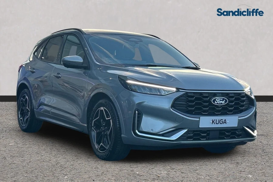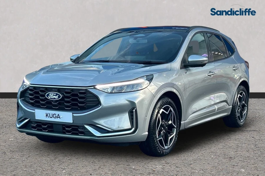Unleash elegance and agility with the new Ford Kuga ST‑Line X 1.5 EcoBoost 150PS in striking Solar Silver — a sleek, dynamic SUV built for the UK roads. Its potent 1.5 litre EcoBoost turbocharged engine delivers 150 PS and 240 Nm of torque, propelling you to a top speed of 121 mph and 0-62 mph in approximately 9.7 seconds. Dressed in the athletic ST-Line X trim, the car pairs sporty styling with premium interior touches and advanced connectivity, making it a standout both on the motorway and around town. Whether navigating the M1 or tackling winding country roads, this Kuga blends everyday p...