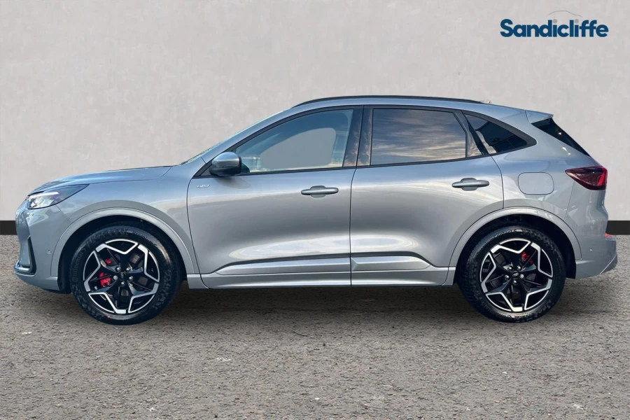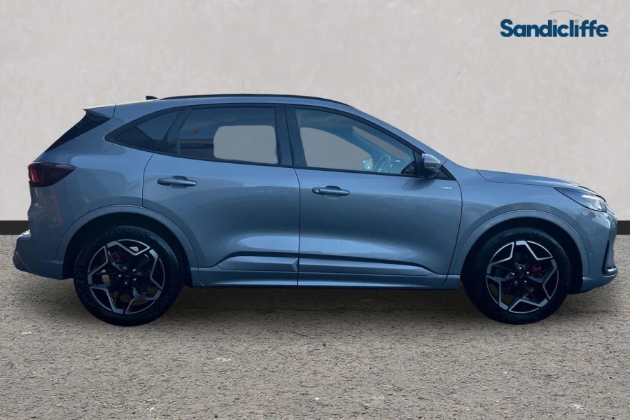 Unleash elegance and agility with the new Ford Kuga ST‑Line X 1.5 EcoBoost 150PS in striking Solar Silver — a sleek, dynamic SUV built for the UK roads. Its potent 1.5 litre EcoBoost turbocharged engine delivers 150 PS and 240 Nm of torque, propelling you to a top speed of 121 mph and 0-62 mph in approximately 9.7 seconds. Dressed in the athletic ST-Line X trim, the car pairs sporty styling with premium interior touches and advanced connectivity, making it a standout both on the motorway and around town. Whether navigating the M1 or tackling winding country roads, this Kuga blends everyday practicality with a keen sense of performance — all wrapped in a colour that radiates sophistication.